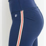 Sleek and stylish Pure Speed leggings look race ready, even when you’re sitting still. The high waist gives you support. The orange and white stripe make you look long and lean. And the super stretch material covers you in comfortable confidence.